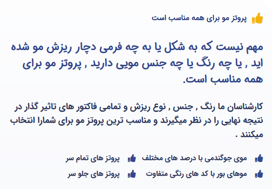 مهم نیست چه مدل مویی رامیپسندید پروتز مو هیچ محدودیتی نداردشما میتوانیدبدون هیچ محدودیتی مدل موی موردعلاقه خود راداشته باشید.